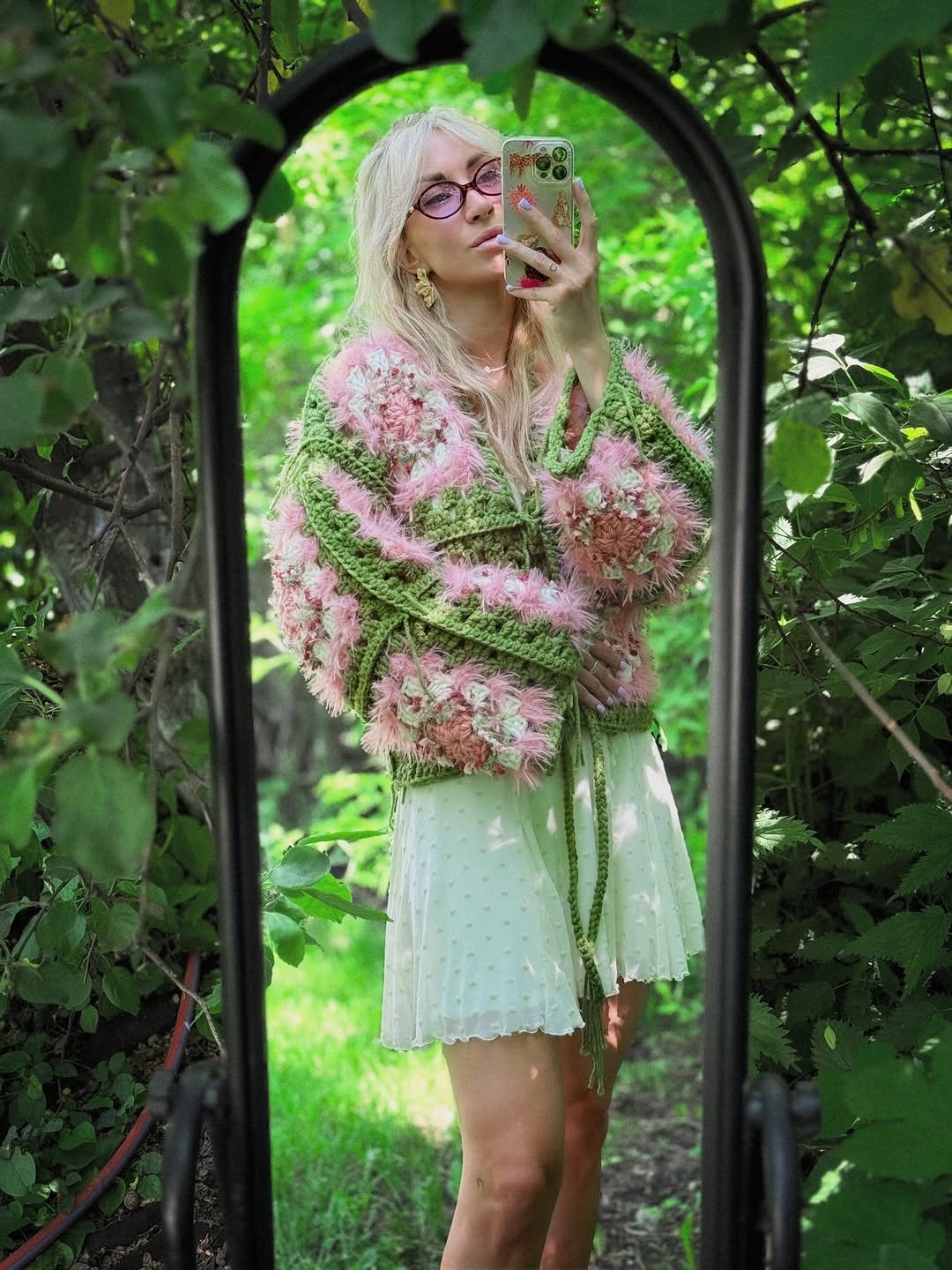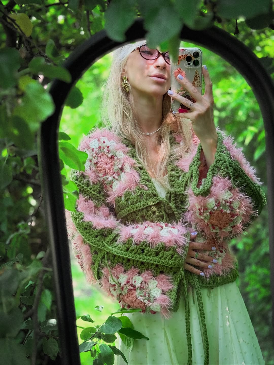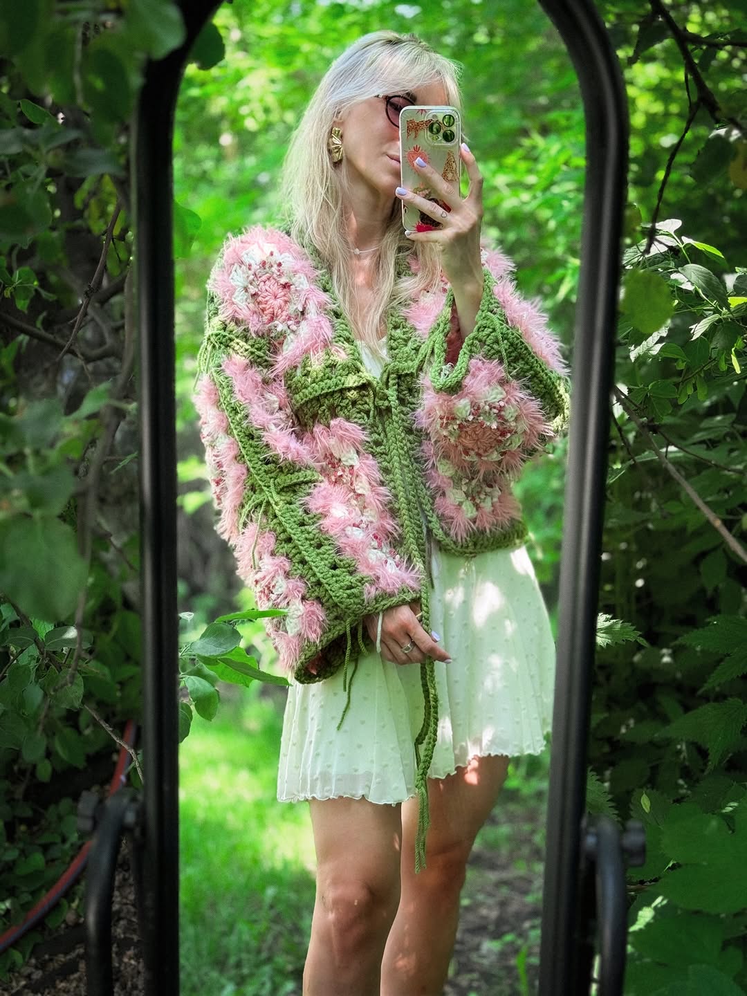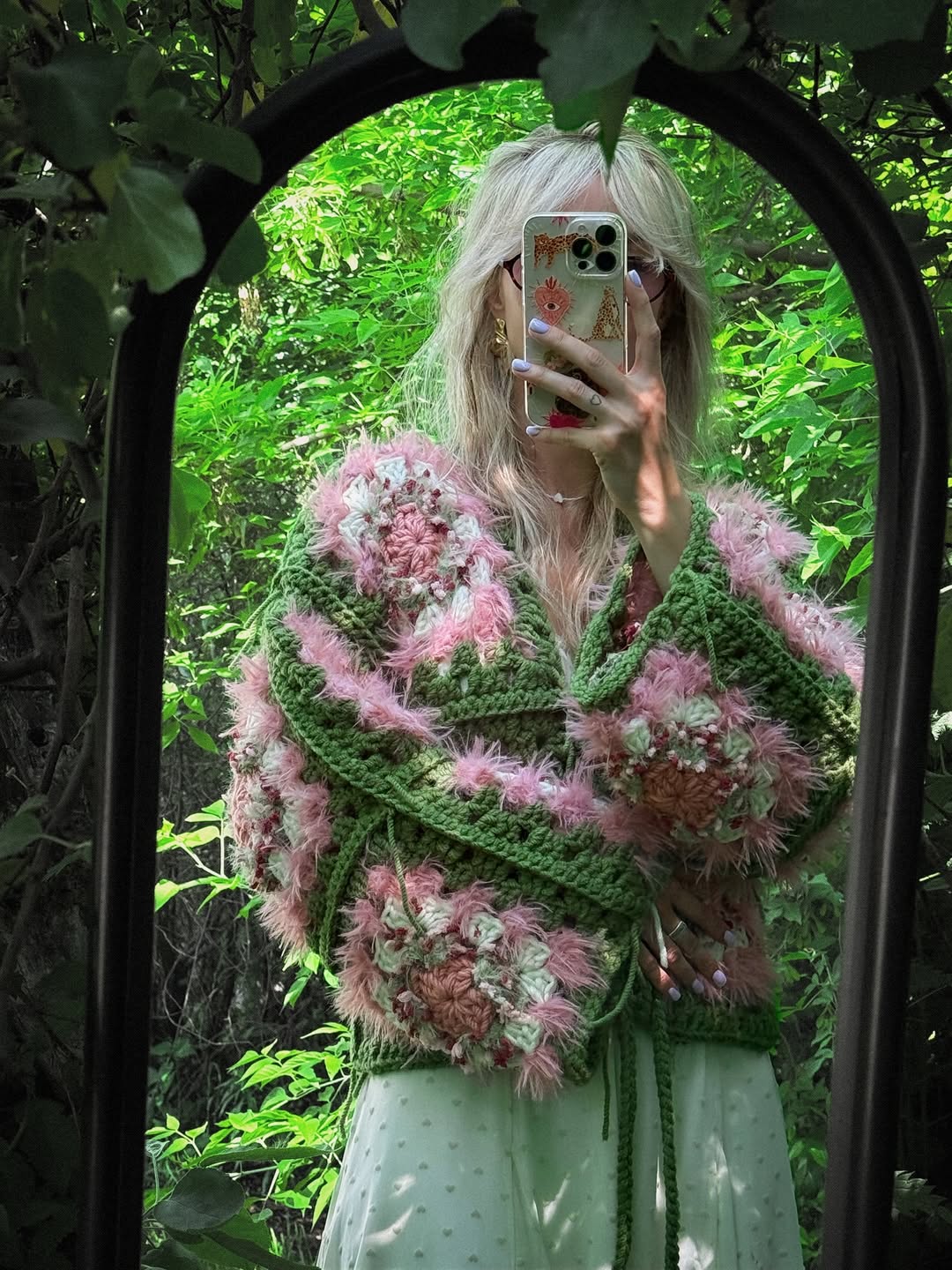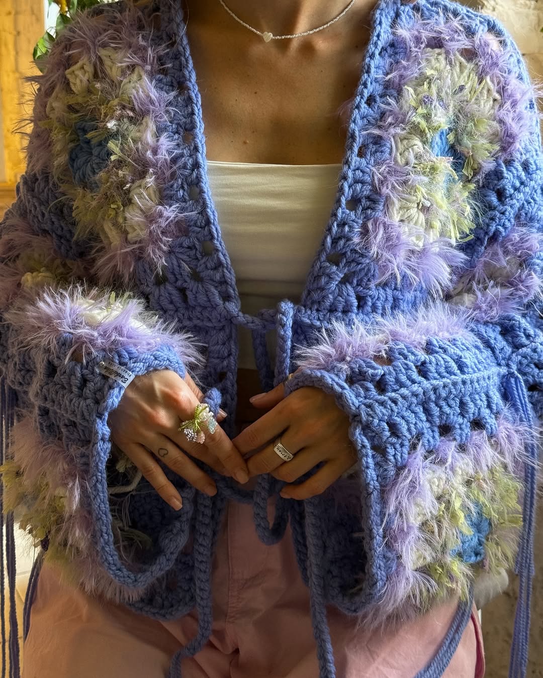 This design combines different yarn textures for a cozy, layered look — perfect for anyone who loves handmade comfort and natural, boho-inspired style.